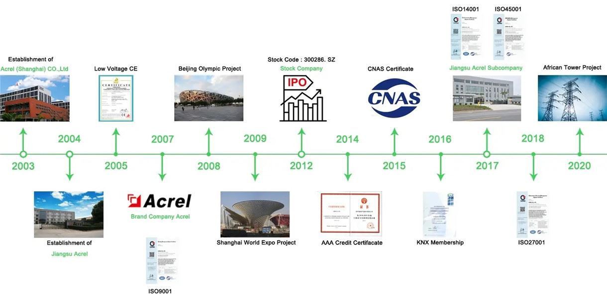 Acrel yra išmaniųjų elektros skaitiklių gamintojas, įkurtas 2003 m., integruojantis mokslinius tyrimus, gamybą, pardavimą ir aptarnavimą. Per šiuos 19 metų įgyvendinome tūkstančius išmaniųjų energijos skaitiklių projektų pasaulyje.